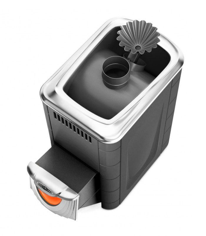 Банная печь Ангара 2012 – находка для тех, кто ценит традиционную русскую баньку: пожарче и с густым паром. Корпус-каменка выполнен из особо прочной хромированной стали, которой не страшны перепады температур и высокая влажность. Конструктивные особенности печи обеспечивают быстрый нагрев парной до высокой температуры, а благодаря большому количеству камня воздух насыщается кислородом и не пересушивается. Внутри корпуса расположена закрытая каменка, которая прогревается равномерно со всех сторон. Кожух-конвектор распределяет тепло по всему объёму помещения. Поверх находится открытая каменка. Лёгкий пар образуют по максимуму раскалившиеся камни в закрытой каменке, вода на которые подаётся через специальную воронку. Система дожига выходящих газов позволяет печи работать, полностью используя топливо. Модель имеет выносной топливный канал: таким образом, в смежном с парной помещении у вас будет подобие уютного камина с дверкой, оснащённой светопрозрачным термостойким стеклом. А парную украсит стильная каменка в цвете антрацит. Модель рассчитана на парную до 18 кубометров.