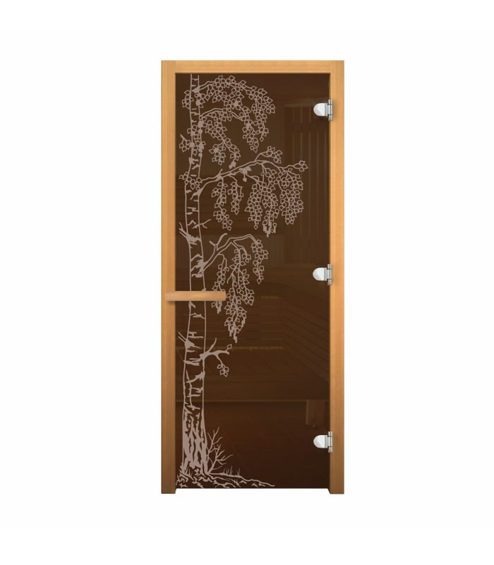 Дверь стеклянная «Берёзка» (бронза, коробка осина, 3 петли 716 CR, 1900х700 мм, правая)