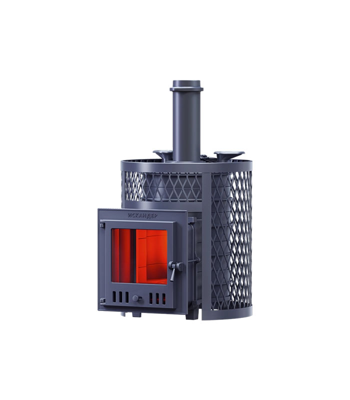 Печь для бани Искандер от ТехноЛит с прямым нагревом парообразователя. Печь эконом-класса со стенками толщиной 14 миллиметров быстро нагревает воздух в парной и производит качественный мелкодисперсный пар за счёт теплоёмкой каменки, оснащённой теплосъёмными шипами на нижней поверхности.