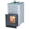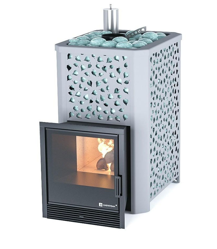 Ялта – уникальная модель производства ИзиСтим, в которой функциональность гармонично дополняется оригинальным декоративным дизайном. Печь имеет 2 каменки – закрытую и открытую. Ещё больше банного камня — 280 кг в общей сложности – это непревзойдённая атмосфера без жёсткого ИК излучения и нежнейший обильный пар. Топка из стали надёжно защищена облицовкой из шамотных плит, которые в любой момент легко заменить новыми. Дверца топки расположена в смежном помещении, а оформление широкой стальной рамой с жаропрочным керамическим стеклом делает её заменой современного камина. Здесь вы закладываете топливо, отдыхаете между посещениями парной и любуетесь игрой пламени. Кожух сетка выполнен из стали, окрашенной специальной термостойкой краской светло-серого цвета, а ажурный узор вырезан в виде берёзовых листочков. Печь Ялта 25 рекомендована для помещений до 30 кубометров.