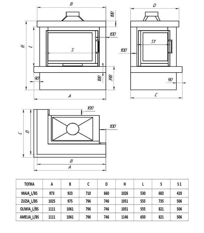 Портал Ладога угловая с каминной топки Zuzia (стекло слева)