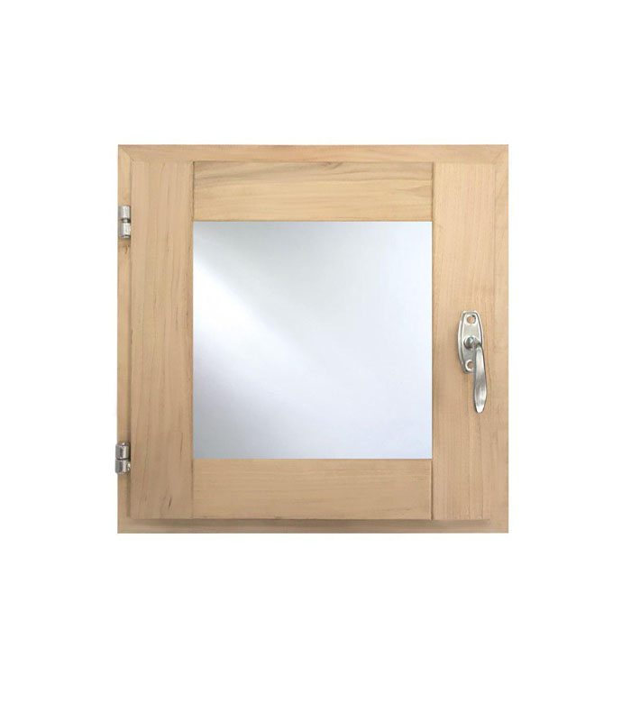 Рама банного окна чаще всего выполняется из древесины: этот универсальный природный материал прекрасно сохраняется в условиях перепадов температур и повышенной влажности, не выделяет токсины и неприятные запахи при нагреве. Древесина липы – один из лучших материалов для банных изделий. Ровная и гладкая структура, способность быстро перенимать температуру тела, эстетичный светлый оттенок, сохраняющийся на всё время службы – вот, что делает липу незаменимой для бани. Установив окно в парном отделении, вы избавляете себя от недостатка кислорода во время банных процедур. Нагреваясь, липа наполнит помещение свежим древесным ароматом. Окно не деформируется и не потрескается, функционируя исправно в течение долгого срока. Данное окно имеет квадратную форму, его размер 600х600 мм.