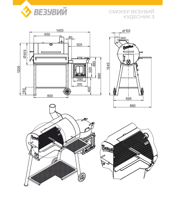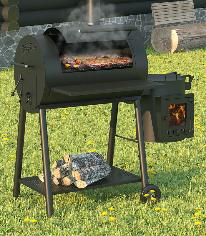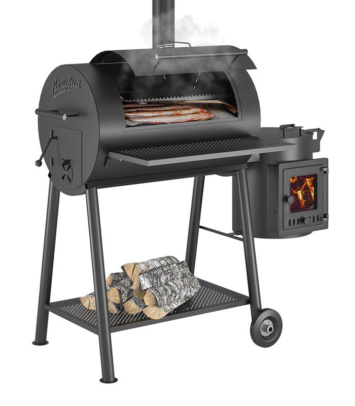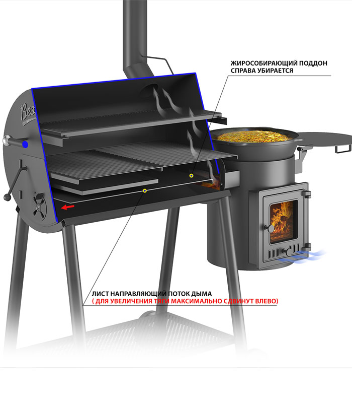 Смокер «Везувий Кудесник 3»: для приготовления пищи на открытом огне, сочетающий в себе барбекю, печь под казан и коптильню.