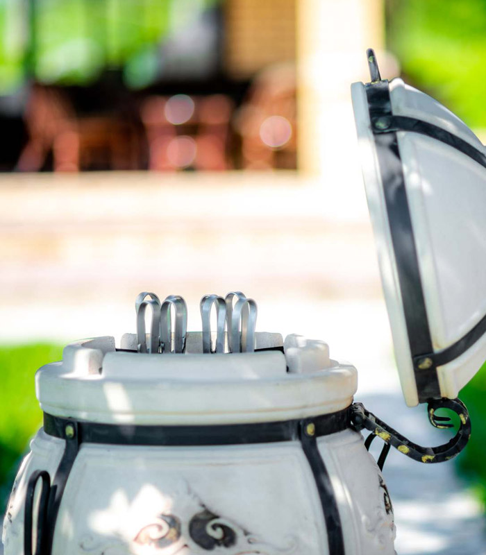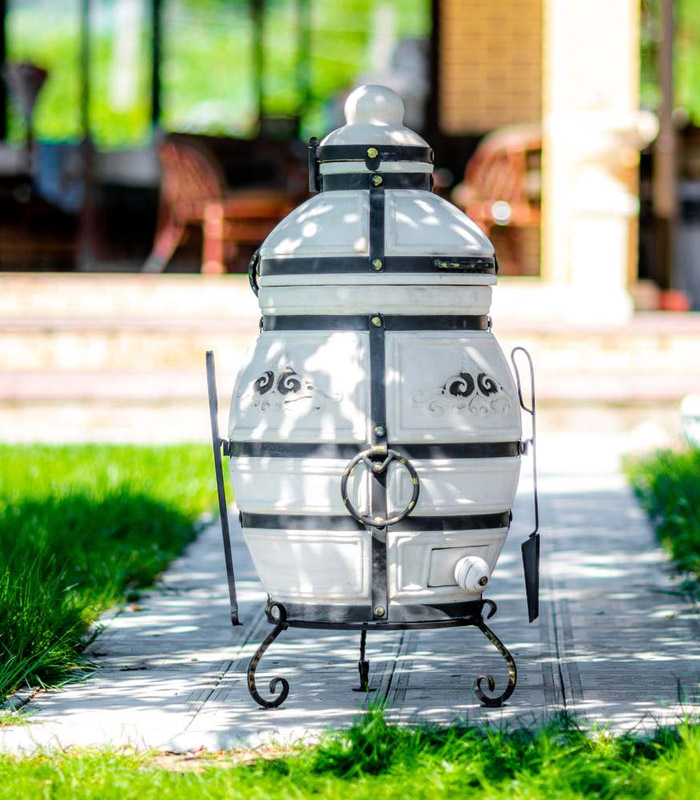 Керамический тандыр «Аполлон» с откидной крышкой — красивая и функциональная керамическая печь для приготовления здоровой и вкусной пищи в походных условиях. Вы можете наслаждаться самыми сочными шашлыками, ароматными овощами, и другими блюдами на свой вкус, взяв тандыр на дачу, в поход с друзьями, на рыбалку или в кемпинг.