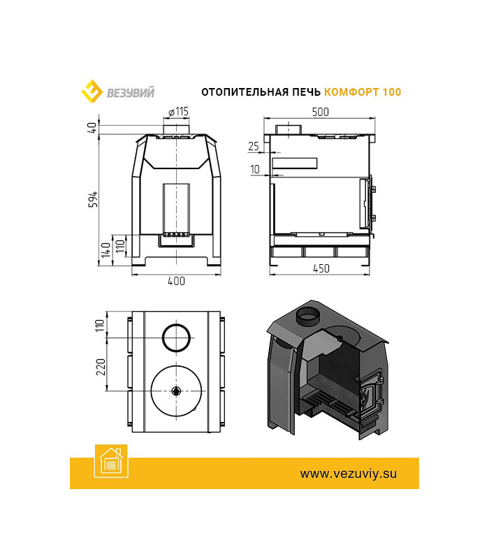 Отопительная печь Везувий «Комфорт-100» (ДТ-3С)