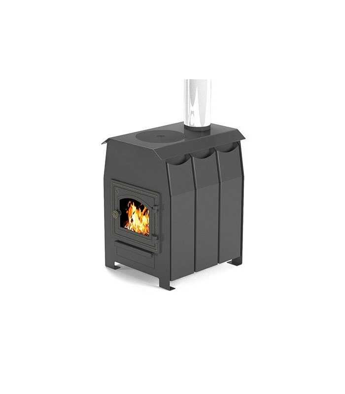 Отопительно-варочная печь «Комфорт-100» — прекрасный вариант для обогрева помещения до 100 кубометров, разогрева и приготовления пищи. Конструкция печи – «конвекционный кожух» (охватывающие боковые панели воздухозаборники) не только снимает жёсткое излучение, оставляя лишь полезное для человека мягкое тепло, но и способствует естественной конвекции. Поэтому воздух быстро и равномерное нагревается. При помощи шибера Вы можете без проблем регулировать мощность работы печи, в нужный момент переведя в тлеющий режим. После этого на одной закладке печь греет ещё около 6-ти часов. Дверца оснащена жаростойким стеклом, позволяющим созерцать весёлый танец пламени. Печь компактна и имеет универсальный внешний вид, хорошо вписываясь в любой интерьер. Корпус окрашен современной жаропрочной эмалью.