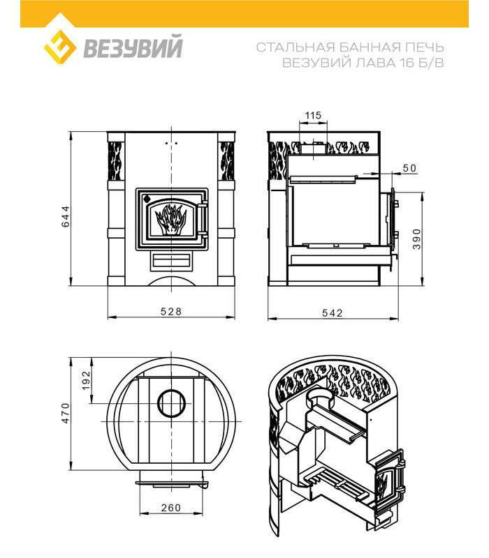 Печь для бани Везувий «Лава 16» (ДТ 3) без выносного топочного тоннеля