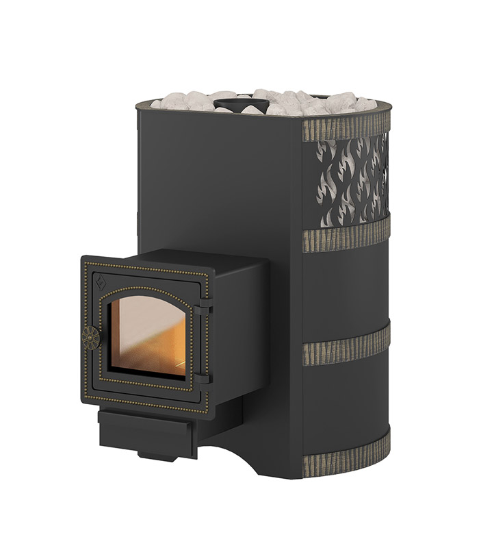 Банная печь «Лава 16 (ДТ-3С)» (топочная дверца со стеклом) производства компании Везувий – надёжная функциональная модель, которая обеспечит любой режим парной на ваш выбор. С ней вы сможете настроить климат русской бани, финской сауны или турецкой хамам на свой вкус. Печь выполнена из котловой стали, отличающейся особой прочностью и устойчивостью к влажности и перепадам температур. Конвекционно-вентилируемый кожух–каменка вмещает до 50 кг камня. Располагаясь над топкой, камень быстро прогревается, наполняя парную особенно мягким теплом и обогащая кислородом и минеральными компонентами, полезными для здоровья человека. При подаче воды на раскалённые камушки вы создаёте мелкодисперсионный пар, который принято называть «лёгким». Печь имеет красивый дизайн – с золотистыми вставками по чёрному корпусу. Данная модель подходит для парной, объёмом до 8-18 кубометров.