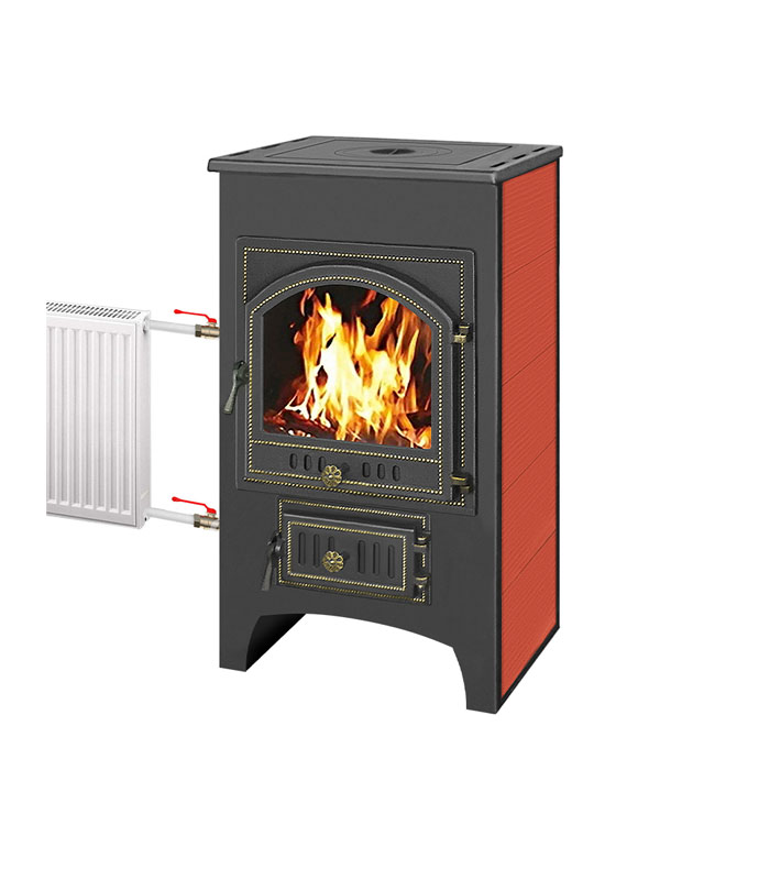 Печь-камин с плитой и теплообменником «Везувий ПК-01» (дверца 205, цв. красный)