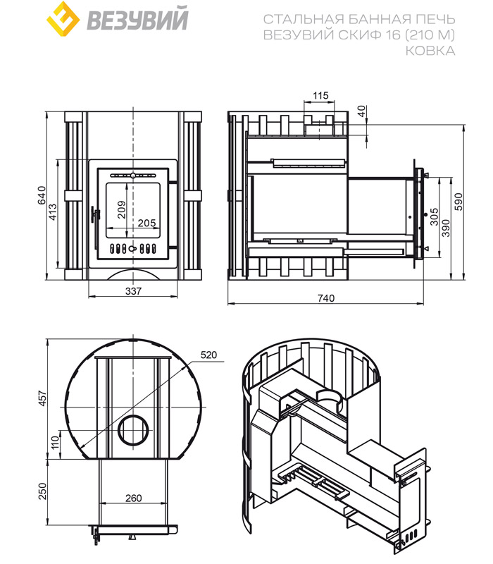 Банная печь «Везувий Скиф Ковка 16 (210 М)»