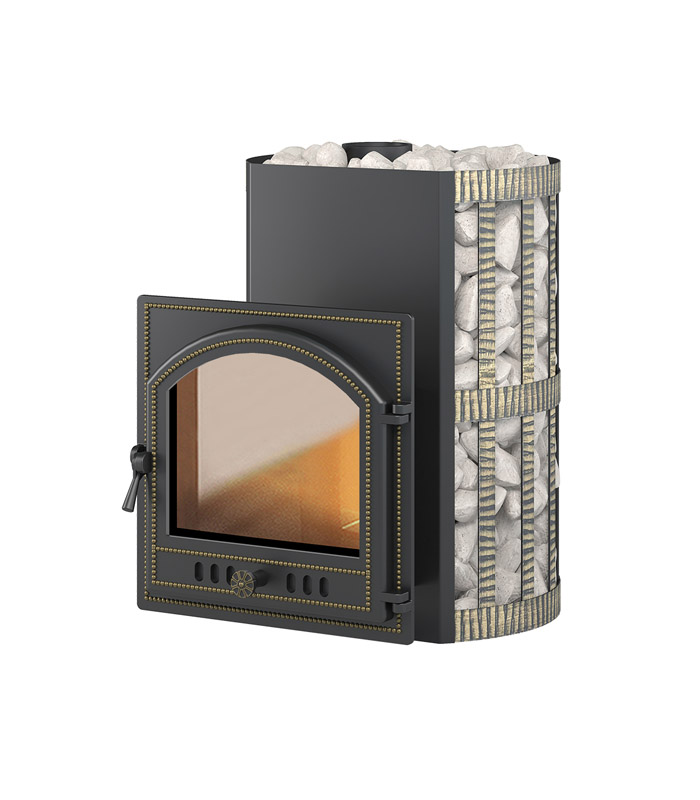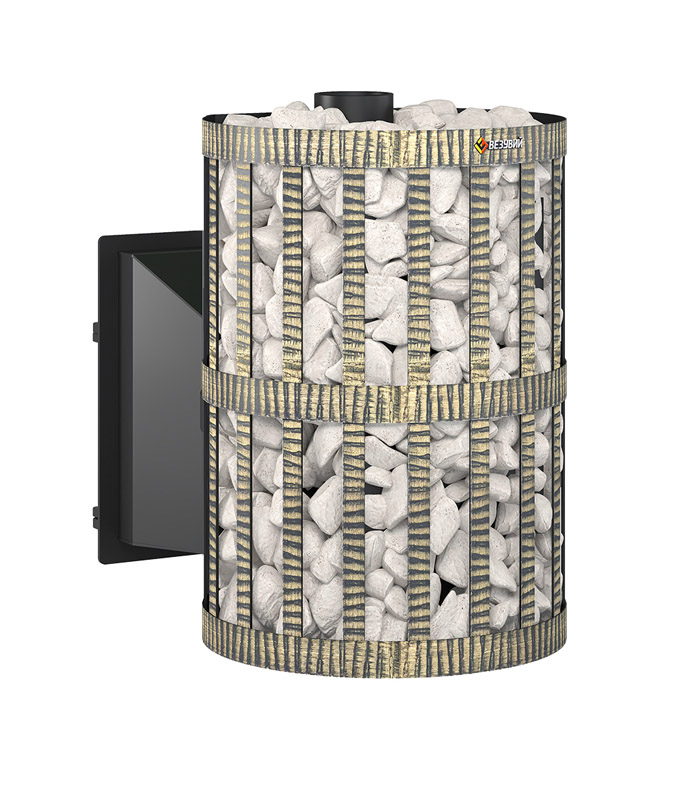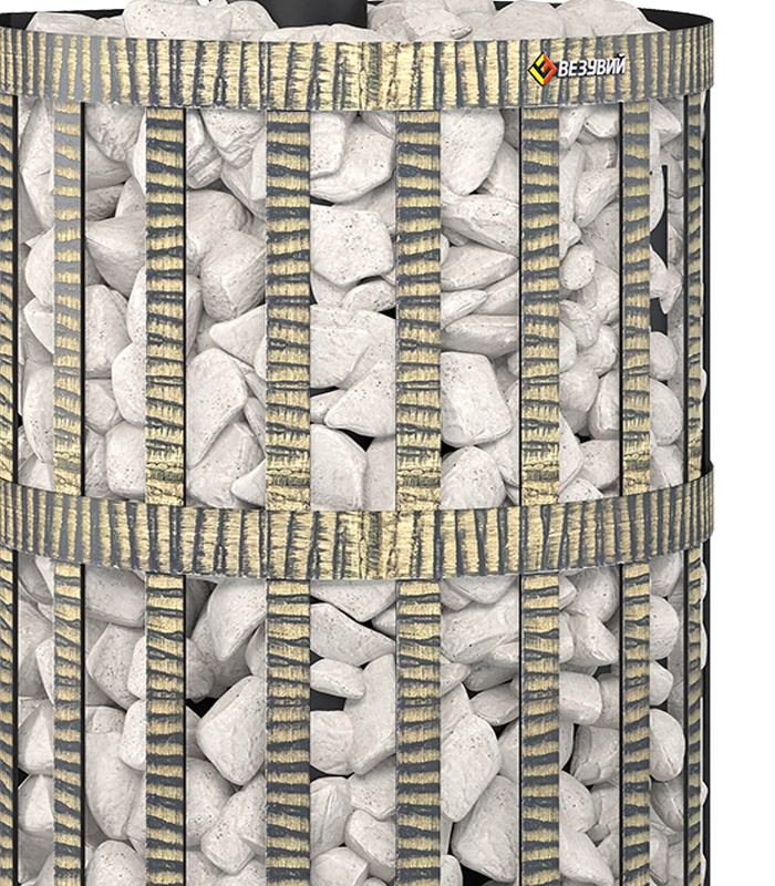 Открытая кожух-каменка выполнена в виде корзины, сплетённой из кованой стальной ленты. Заполнив сетку доверху банным камнем, вы получаете идеально мягкую атмосферу и длительное сохранение комфортного тепла. Благодаря расположению камня (110 кг) вокруг топки, центральная часть раскаляется до очень высоких температур, что позволяет получить при подаче воды лучший лёгкий пар.