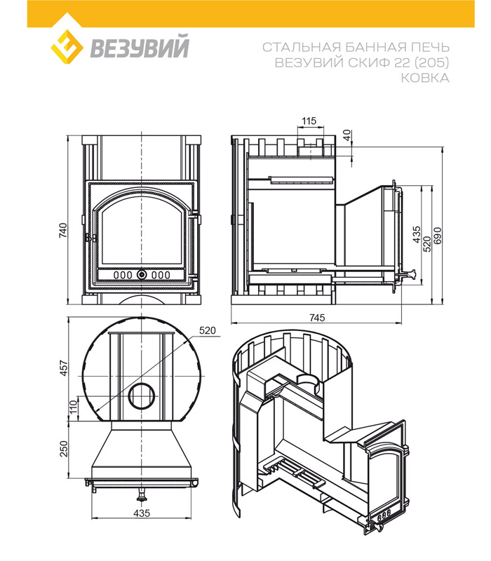 Надёжная стальная печь «Везувий Скиф Ковка 22 (205)» – это оптимальный выбор для парной объемом от 12 до 24 кубометров. Продуманная конструкция, современные материалы, стильный дизайн – вот основные плюсы этой модели.